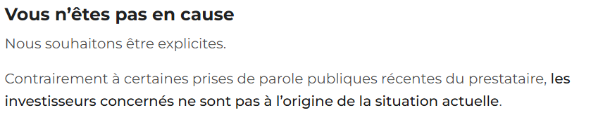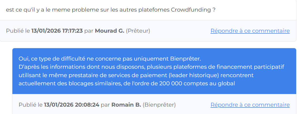 En ce qui concerne Bienprêter, il va de soi que Lemonway n’a prévenu personne côté investisseurs, et encore moins la plateforme, qui a découvert ce dysfonctionnement en même temps que nous.
