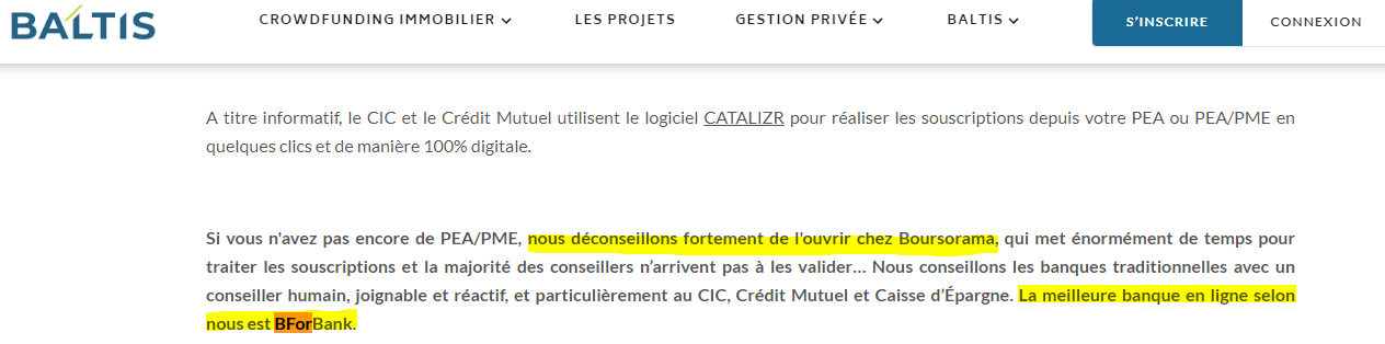 Je ne sais pas si cela est vrai ou non mais Baltis déconseille même de passer par Boursorama :